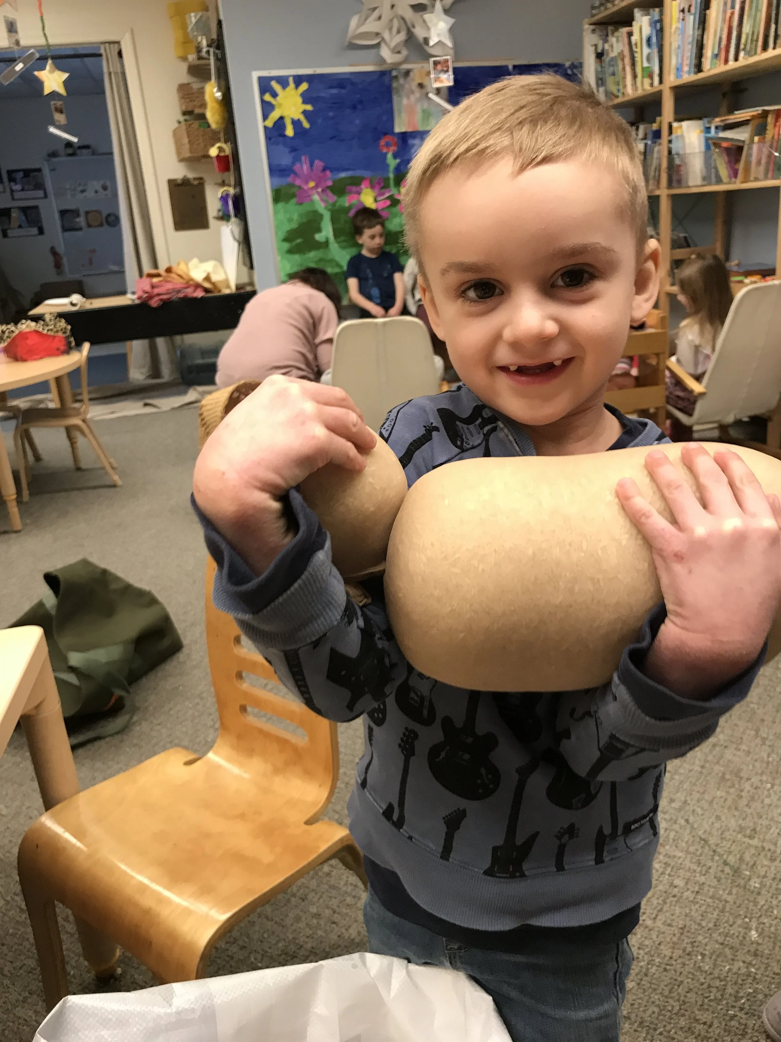 PCS students spent a lot of time out in the world this past week: students visited the 11th and 12th generations of Halsey farmers at the Milk Pail for a tour of the family farm and to pick apples and pumpkins (our annual Halloween tradition); Kindergarteners were back and forth to the yard to collect falling leaves; Middle Primary headed to Riverhead to shop for sneakers for kids in need; Early Childhood followed Rebekah out to the garden to harvest, clear, and prep beds during Wellness; and all of the Primaries, plus Kindergarten, rode the bus to the Southampton Arts Center to be the first visitors to experience artist Francisco Alvarado-Juárez’s Light of the Ocean installation ahead of its opening reception.